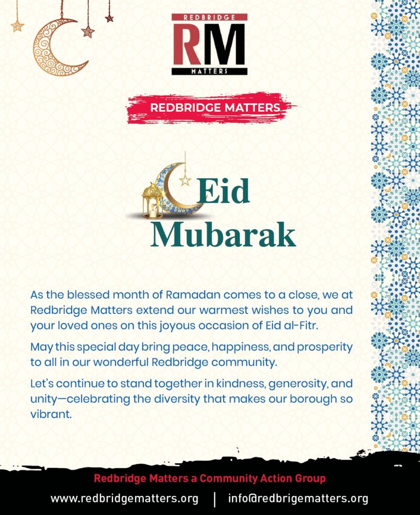 As the blessed month of Ramadan comes to a close, we at Redbridge Matters extend our warmest wishes to you and your loved ones on this joyous occasion of Eid al-Fitr.